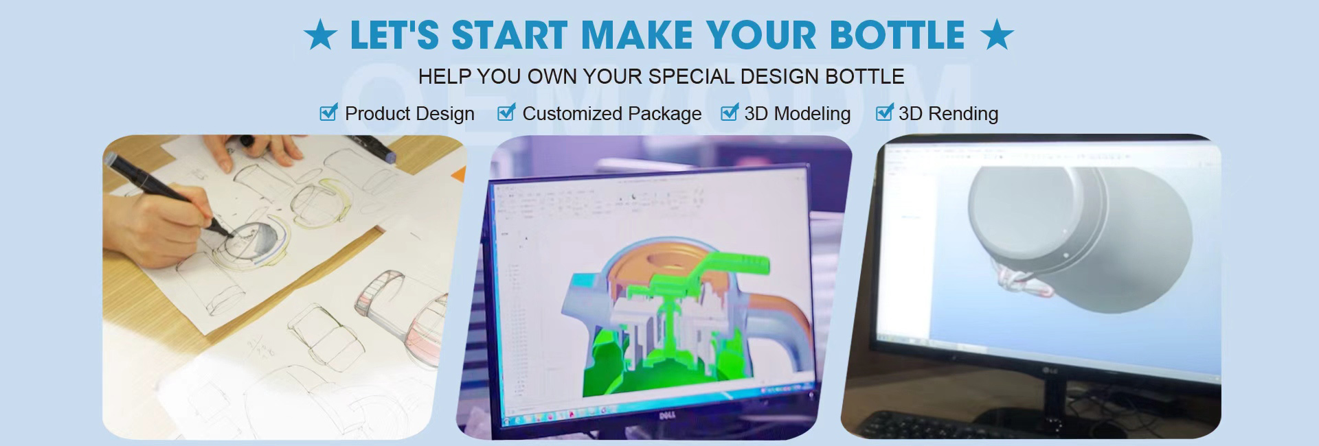 Your Vision, Our Craftsmanship – Custom Drinkware Made Easy. We understand the power of unique branding, which is why we offer comprehensive OEM & ODM services to bring your ideas to life. Whether you want to customize an existing model or create a completely original design, our professional designers and engineers will work closely with you to develop the perfect product for your market. From concept to production, we ensure premium quality, cutting-edge trends, and seamless execution. Have a design in mind? Contact us today – let's turn your vision into a best-selling bottle!